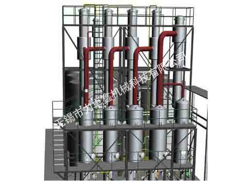 產品概述:多效蒸發(fā)器由各效加熱蒸發(fā)器、各效分離器、冷凝器、熱壓泵、殺菌器、保溫管、真空系統、各效料液輸送泵、冷凝排水泵、操作平臺、電器儀表控制柜及閥門、管路等系統組成。